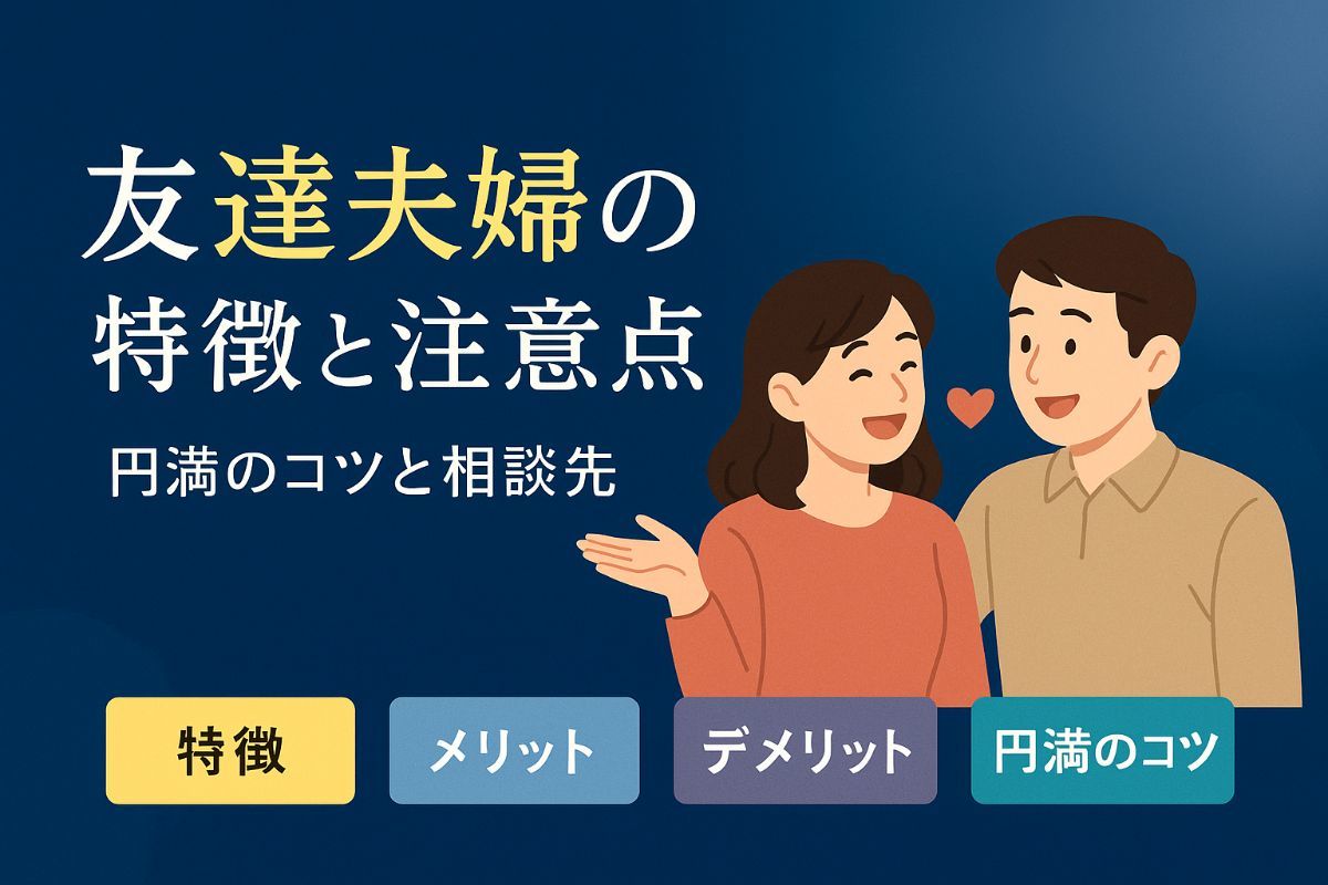 2025/07/12夫婦関係の変化に気づいたとき、誰に相談すべきか迷うのは自然なことです。配偶者との会話がぎこちなくなった、日常の中で互いにすれ違いが増えた、そんな悩み... -